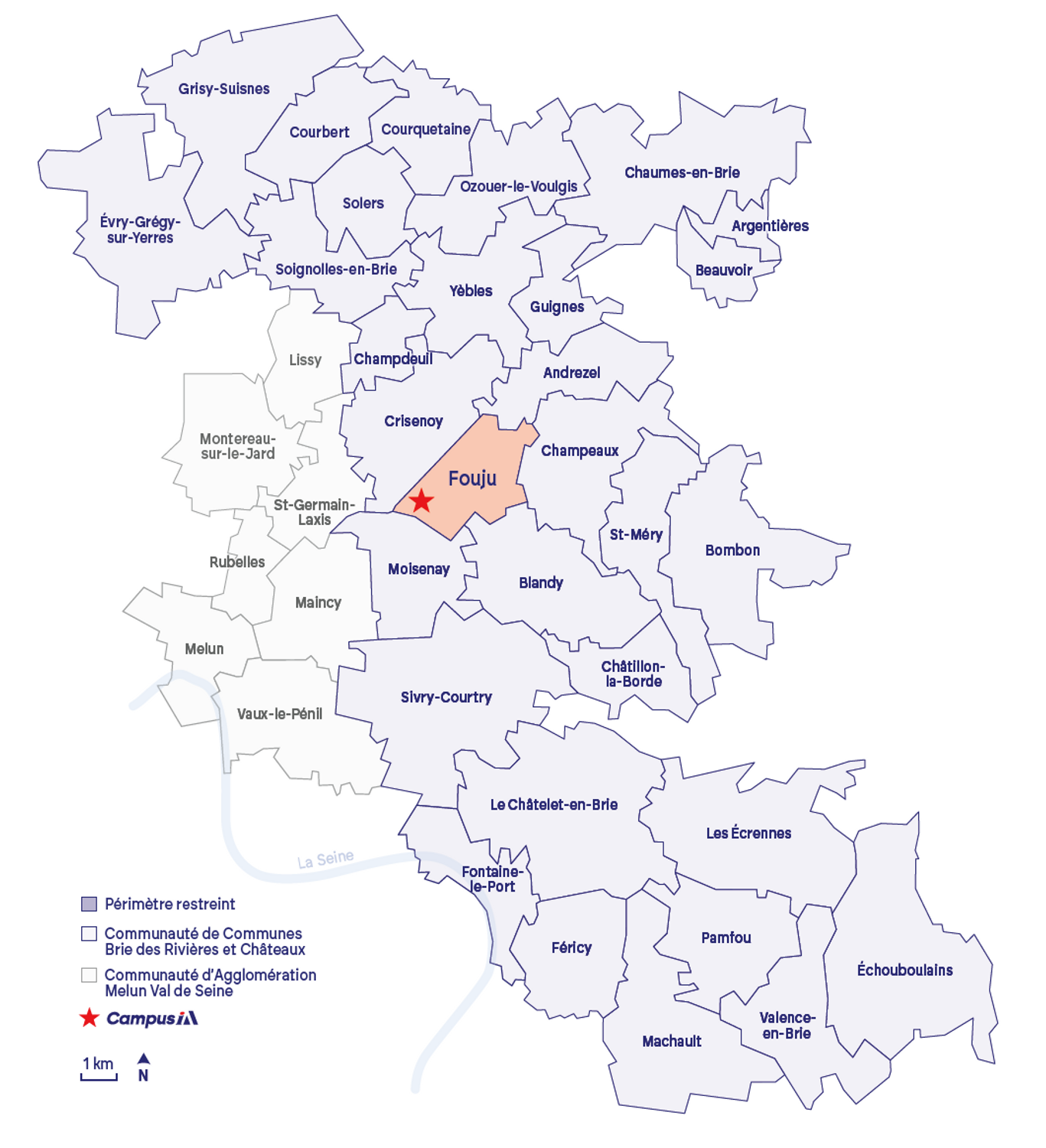 - Le projet Campus IA concerne également un bassin de vie et d’emploi qui dépasse les limites communales. Ainsi, l’ensemble des communes de la Communauté de Communes de Brie, Rivières et Châteaux (CCBRC) et les communes du nord de l’agglomération Melun Val de Seine sont intégrées au périmètre élargi, avec une diffusion de l’information par le biais des communes et de leurs moyens de communication habituels et l’organisation d’un nombre plus limité de rencontres.